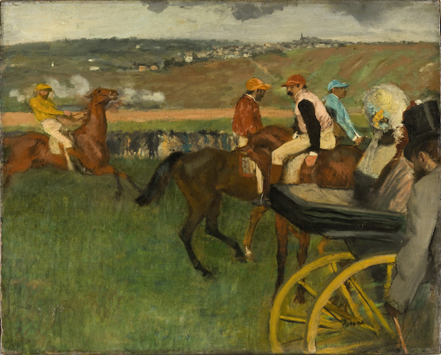 Le Champ de courses. Jockeys amateurs près d'une voiture