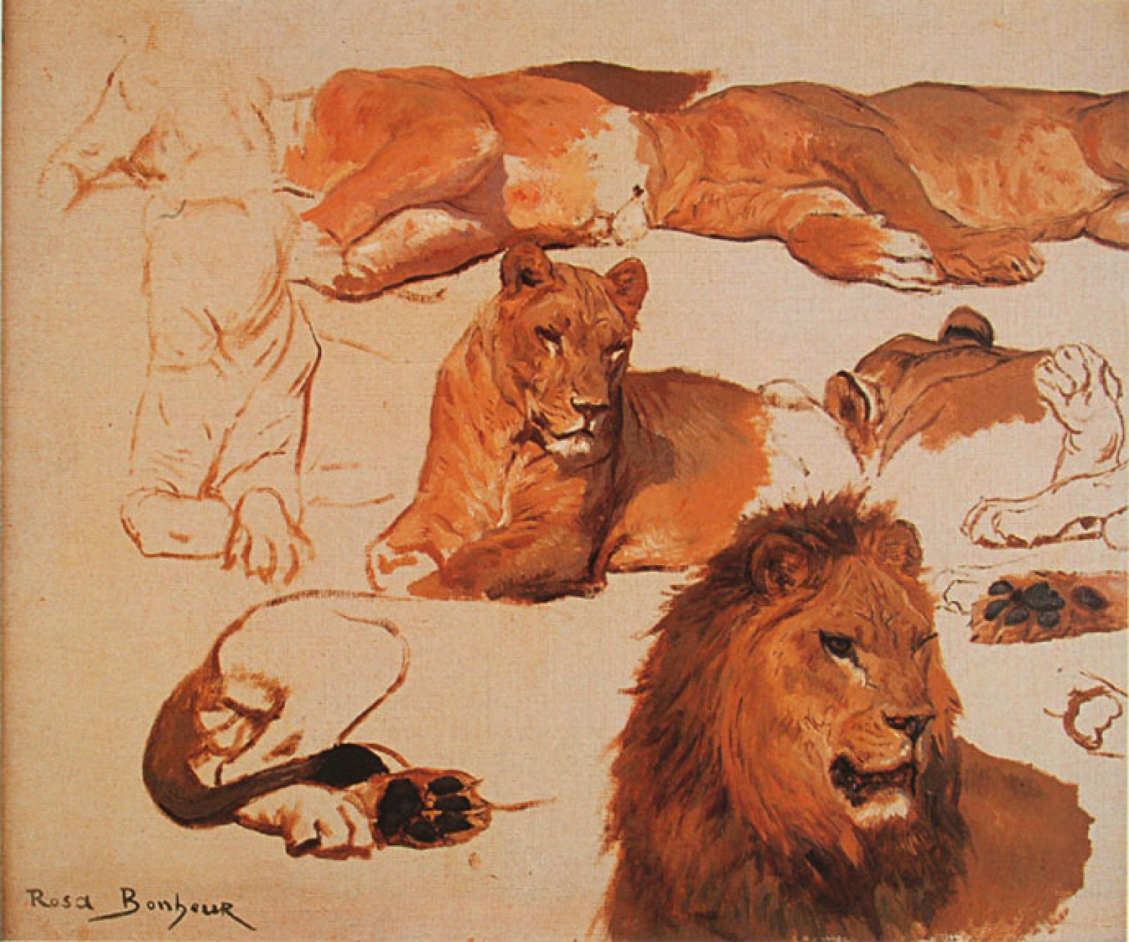 Huit études de lion et lionne et trois études de pattes, entre 1822 et 1899 Rosa Bonheur
