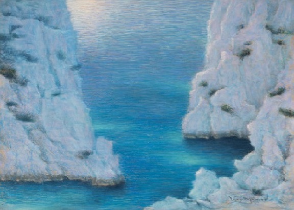 En dépit du réalisme de la représentation que Lévy-Dhurmer nous donne des calanques, l’intensité des couleurs qu’il utilise irradie le paysage d’une lumière surnaturelle, lui donnant un coté magique.