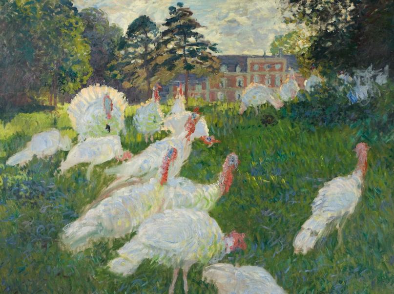 Tu peux distinguer sur le tableau ce château qui était entouré d'un grand parc. A coté se trouvait une ferme dont se sont peut-être échappés les dindons. Montgeron n’est pas loin de Paris en train. Ernest y fait venir ses amis quand il vient dans sa résidence secondaire.